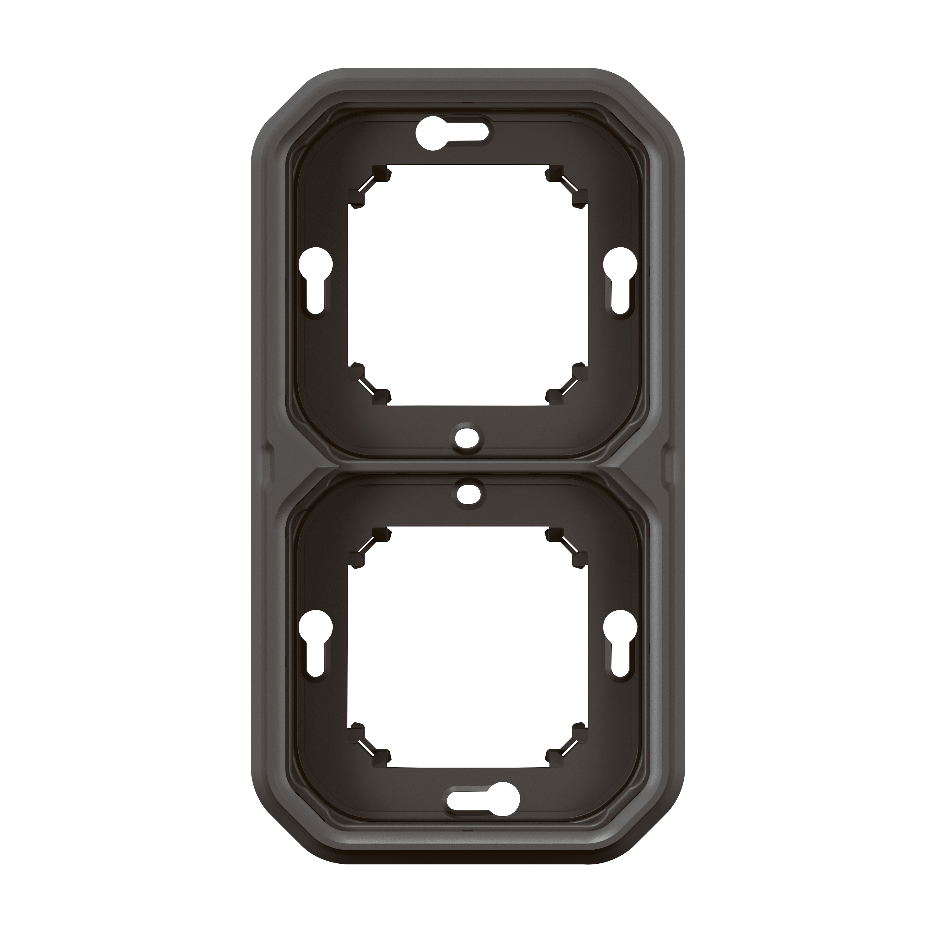 Опорная рама LEGRAND Plexo (артикул 069607L) в антрацитовом цвете предназначена для скрытого монтажа двух устройств серии Plexo. Эта водонепроницаемая рамка обеспечивает надежную установку механизмов как в горизонтальном, так и в вертикальном положении, а степень защиты IP55 гарантирует устойчивость к пыли и влаге. Идеально подходит для применения в жилых, коммерческих и промышленных помещениях.