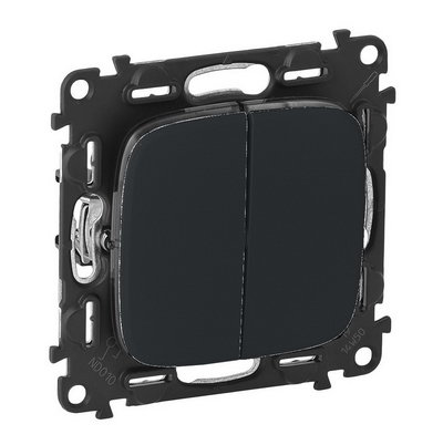 Выключатель 2 клавишный 10А 250В безвинтовые зажимы Legrand Valena Allure 752005+755028 цвет черный.