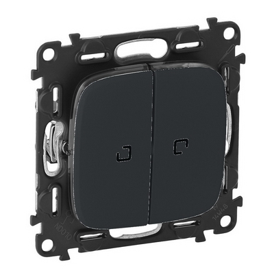 Кнопочный выключатель 2 клавишный с подсветкой 10А 250В безвинтовые зажимы Legrand Valena Allure 752018+67686+67686+755228 цвет черный.