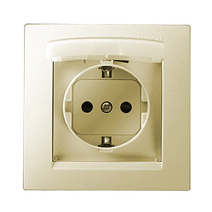 Розетка с заземлением со шторками с крышкой IP44 в комплекте с рамкой Simon 15 1590450-031 цвет бежевый