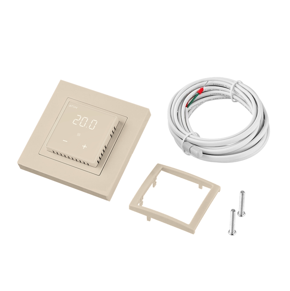 Цифровой терморегулятор ATOM Delta слоновая кость 16А CN2677 — это современное устройство для точного управления электрическим теплым полом. Оно обеспечивает комфортную температуру в помещении, позволяя легко регулировать нагрев в любое время суток. Благодаря стильному дизайну и продуманной конструкции терморегулятор гармонично вписывается в интерьер и совместим с декоративными рамками большинства производителей.